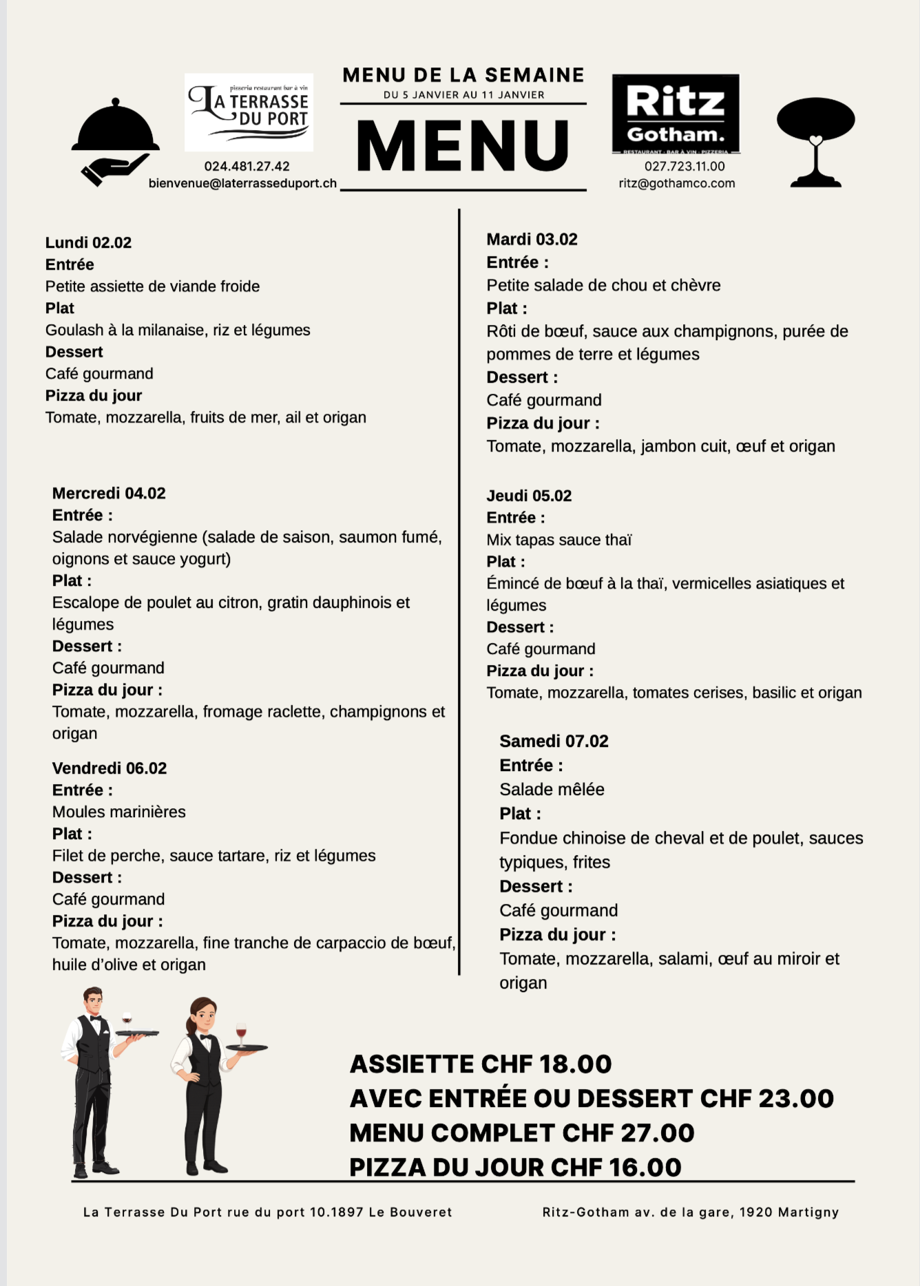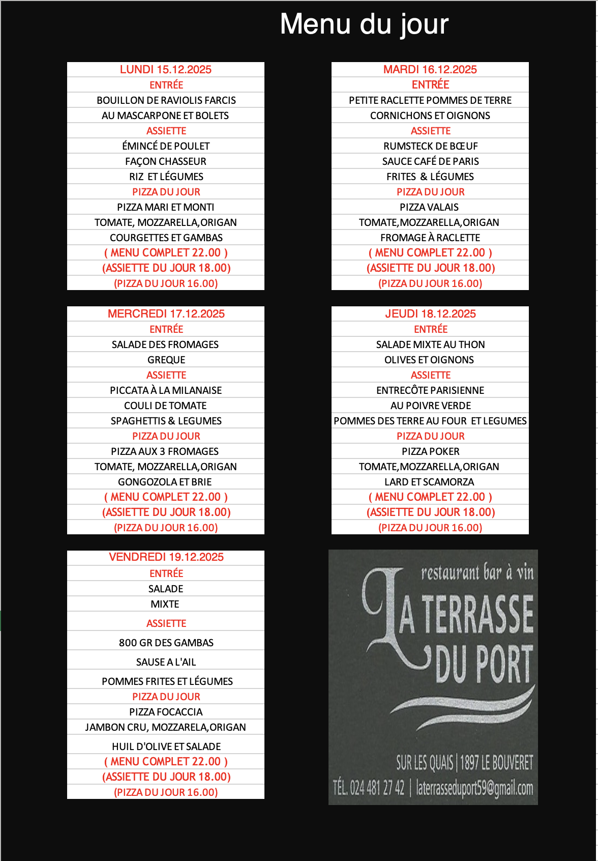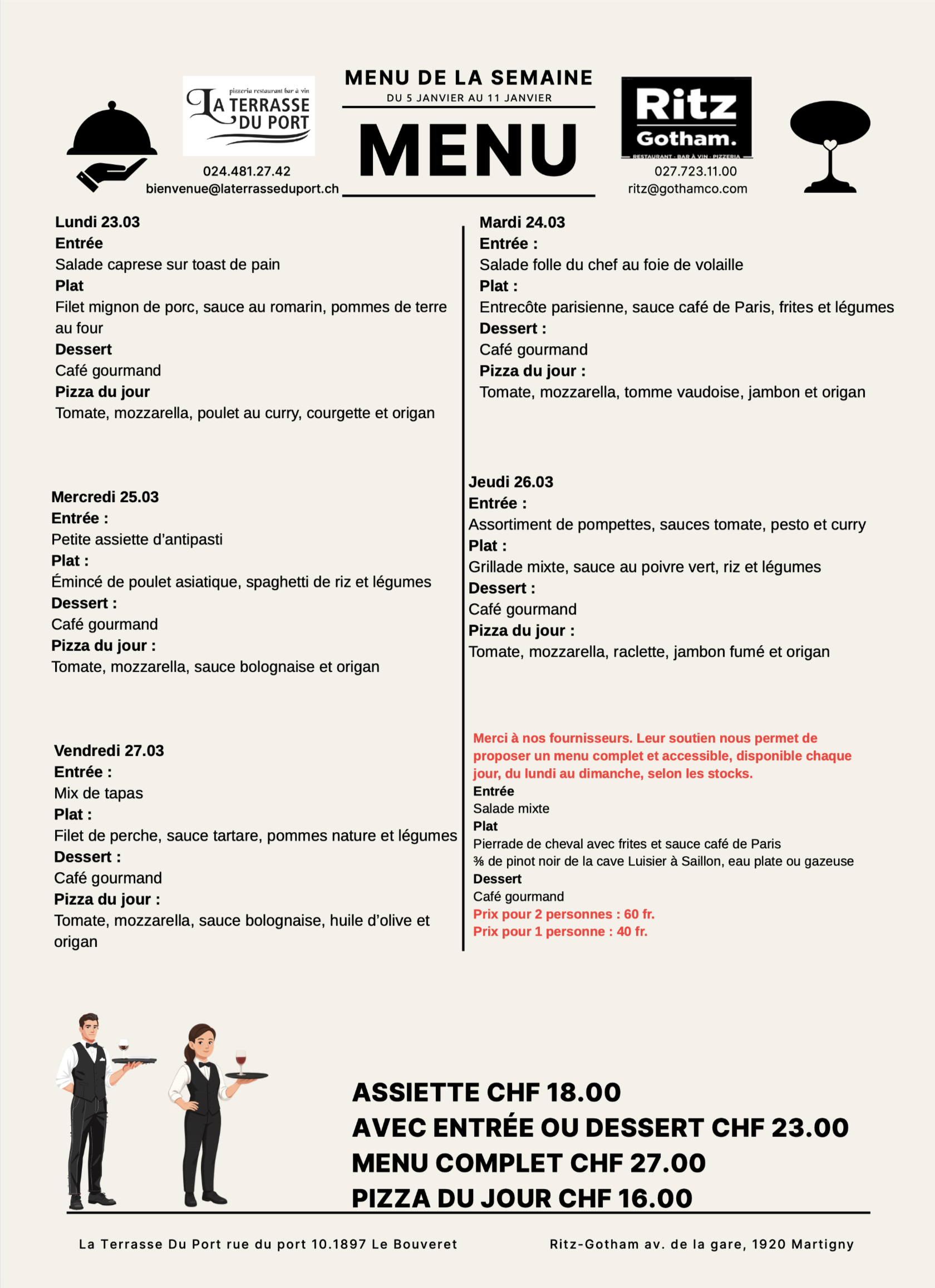 MENU DU JOUR
